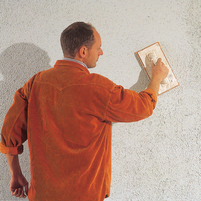 Eine alte Putzregel besagt: „Jeder Putzer hat eine eigene Handschrift.“ Mit anderen Worten: Mit unterschiedlicher Kraft und Stärke beim Verputzen verursacht ihr Strukturunterschiede. Beschränkt euch deshalb auf eine Person, auf eine Handschrift.