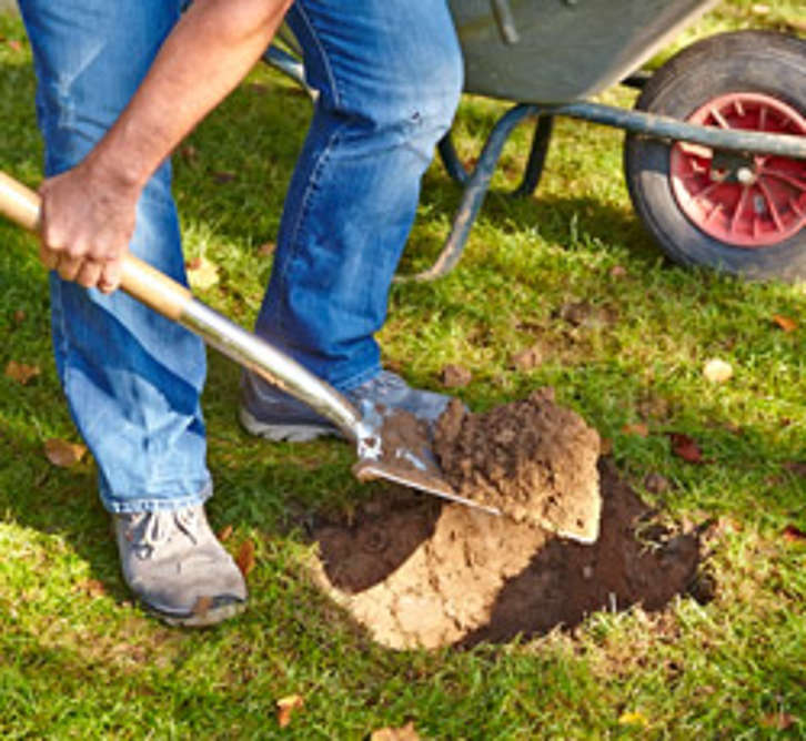 Hinweis: Die Wasserzugabemenge für einen 25-kg-Sack Ruck-Zuck Beton beträgt 3 bis 3,5 Liter. Den Ruck-Zuck Beton in Lagen von jeweils ca. 10 bis 15 cm einbringen und jede Lage vollständig mit Wasser aus einer Gießkanne begießen.
